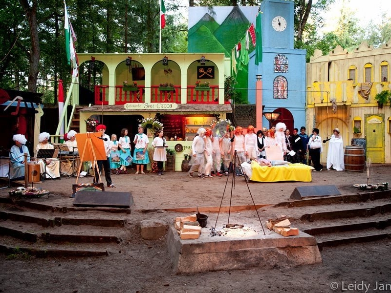 Daarna zetten ze hun tenten op en gaan naar het grote Amfitheater met eigen buitendecor voor het eerste toneelspel.